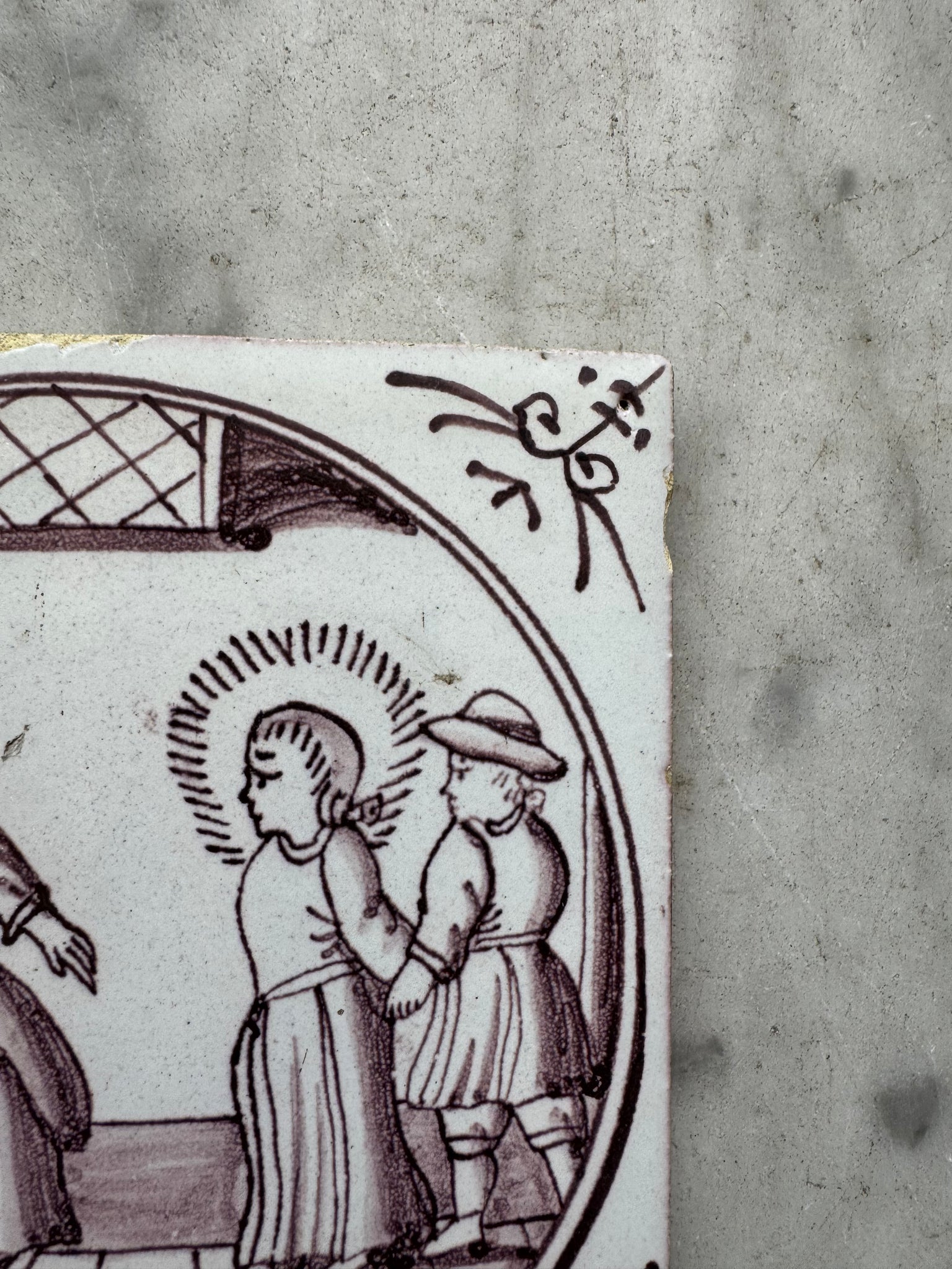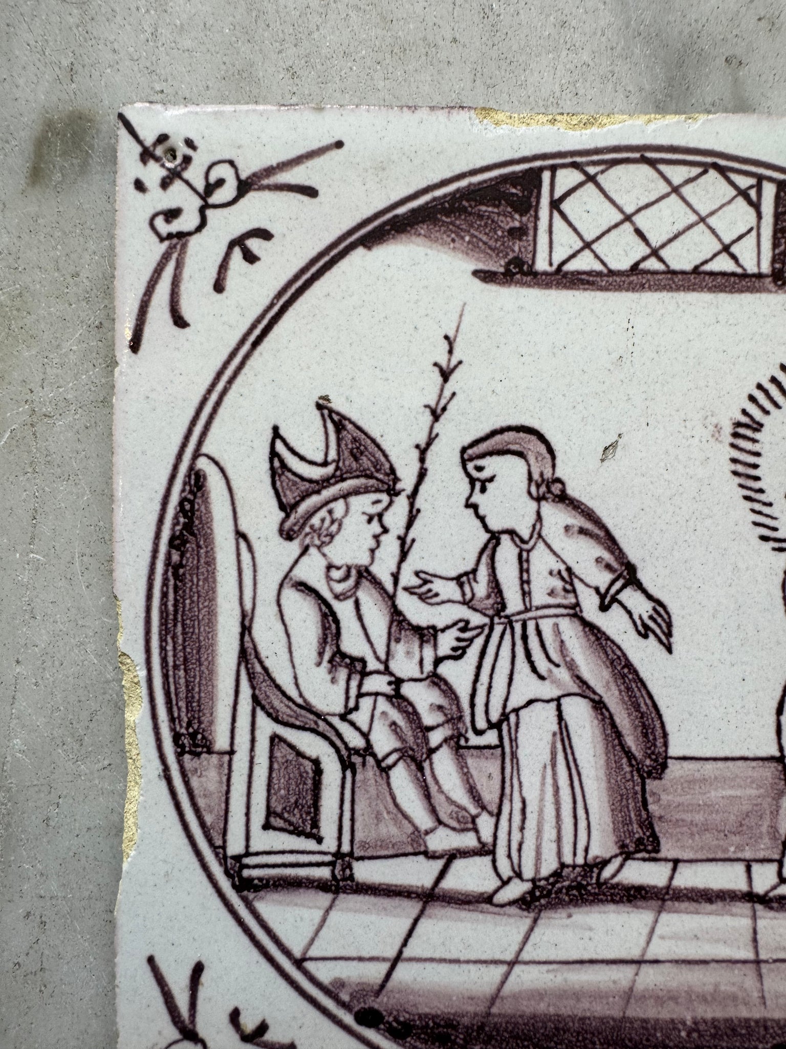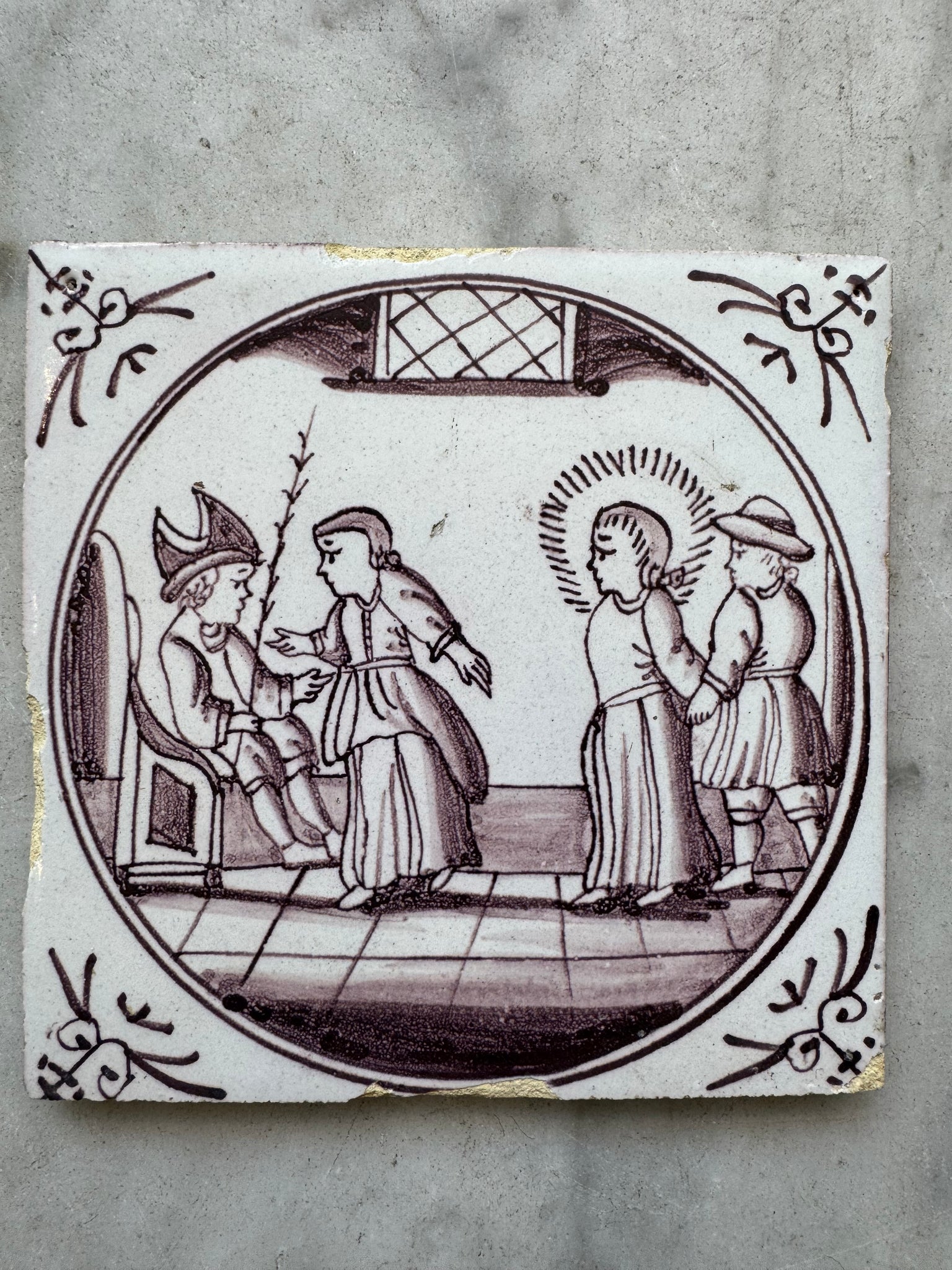 Jesus in front of Pontus Pilatus’, delft 18 th century Dutch tile made around 1760