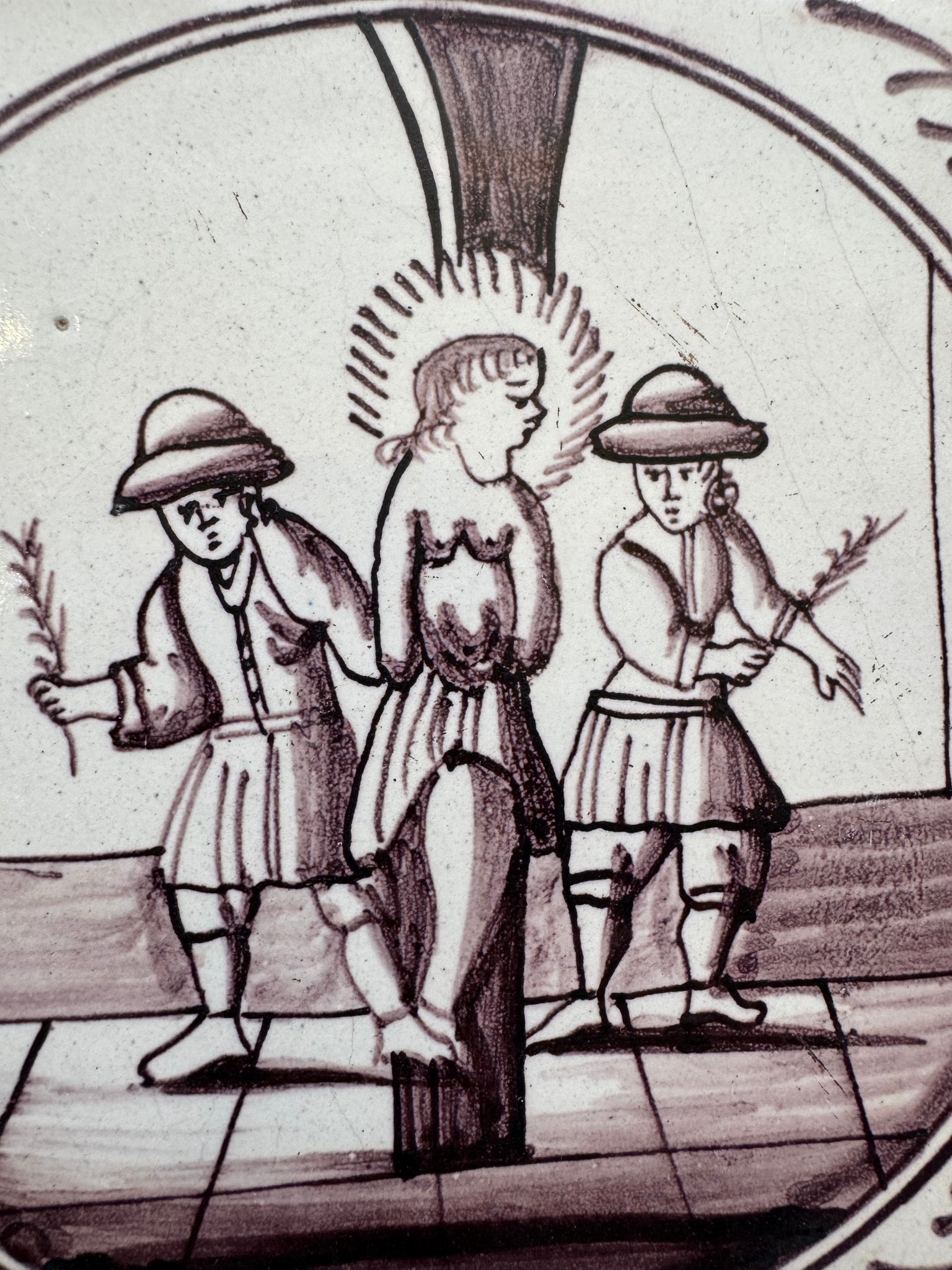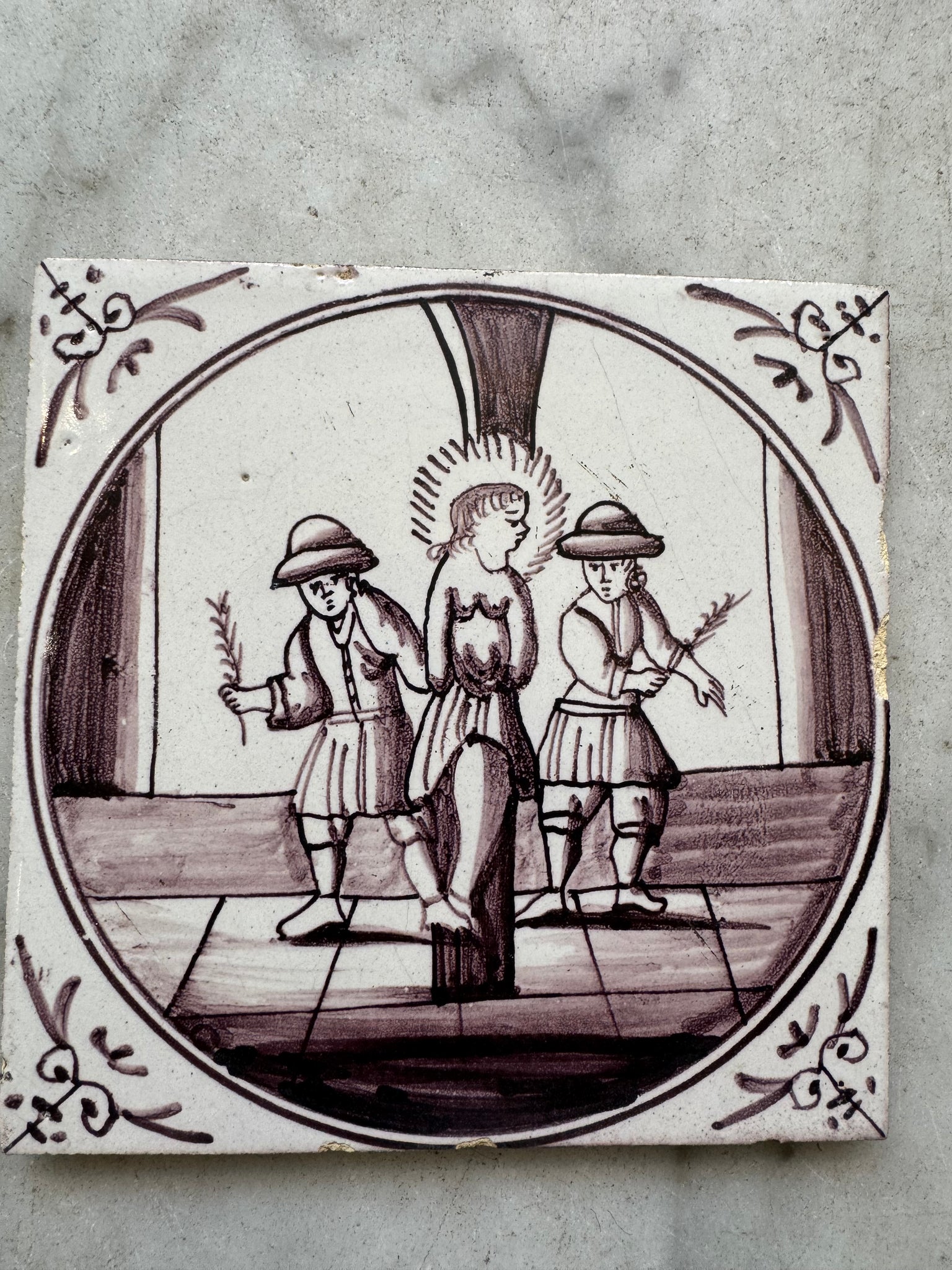 Christ whipped by the Romans , 18 th century delft biblical tile tile made around 1780