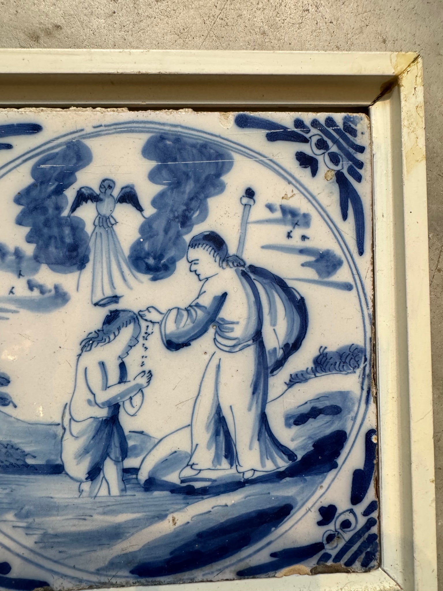 English delft tile made around 1760 in frame