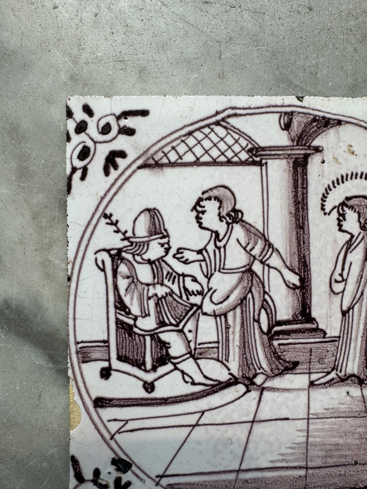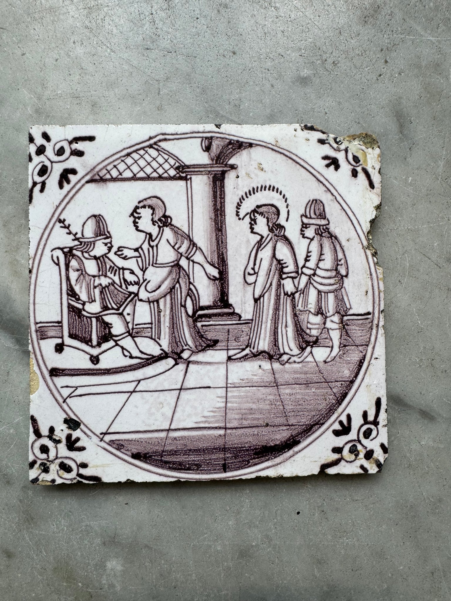 Jesus before Pontus pilatus , bible delft handpainted Dutch tile made around 1760
